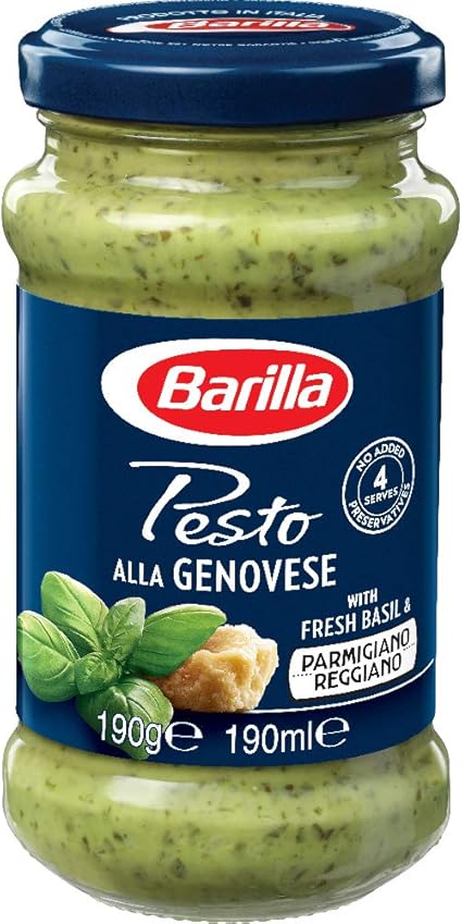 Barilla's famous pesto genovese is made with 100% fresh italian basil and pdo parmigiano reggiano cheese.